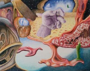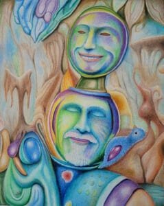 Graphite, colored pencil, and mixed media. Pictures on this page are not digital art. Tiny Mighty Sweet Pea A dragonfly Daddy's Hat Zia Bear, Ellie, Samantha, and Tiny Simon Fate or Faith Alligator snapping turtle Seeing With Eyes Closed - ShivaFooL Self Portrait Shroom ! - lo res